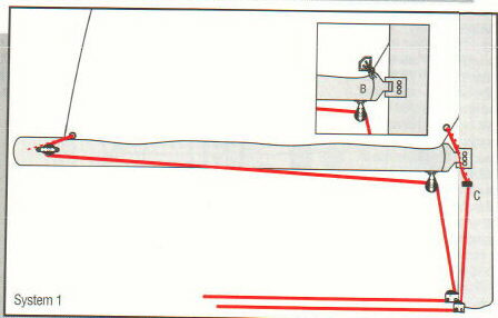 CUNNINGHAM LINE - This mainsail flattening line is not shown in the drawing above because the drawing would become too
