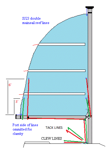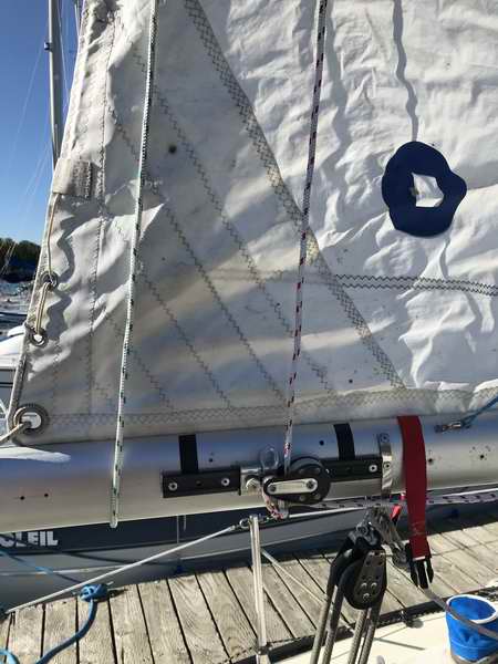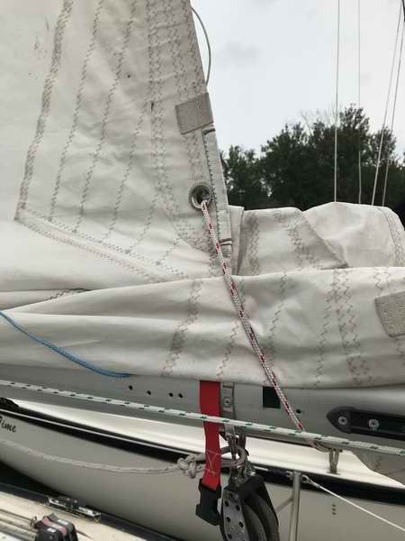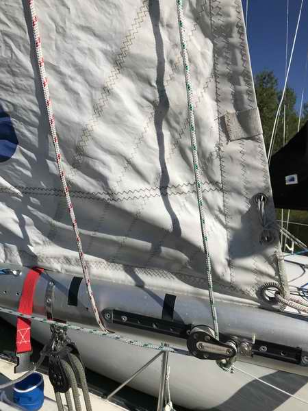 the mainsail straps on the boom. The intention is to keep the reef lines with the boom