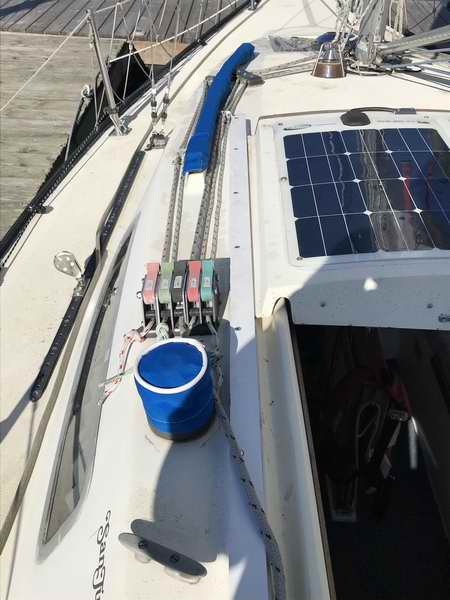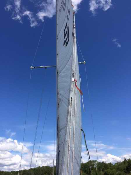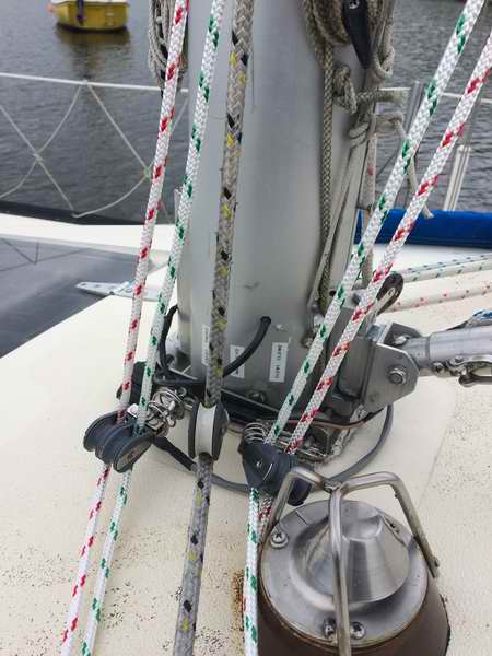 in the cockpit. Since the majority of the sail cloth is bundled on