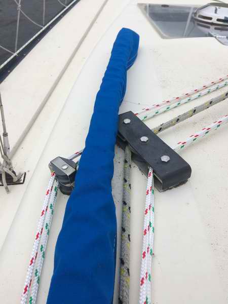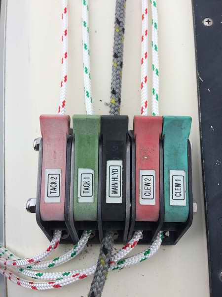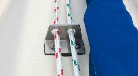 cringles and free up the line jammed against the cloth and inside the blocks. There