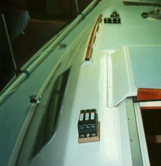 The cabin wall mount is a favourite location of many designers to achieve close jib sheeting. If I had to do it over again for Panache, I might install the track on the cabin wall. However, it must have a backing plate of aluminum or wood inside the cabin to distribute the load. This requires a lot of extra engineering. If you want to hide the nylock nuts, cap the nylock nuts and the aluminum strip with a thin wood strip. Get even fancier and you can install a grab rail over it all. Makes a nice neat, functional installation that is easy on the eyes and useful for the hands. |