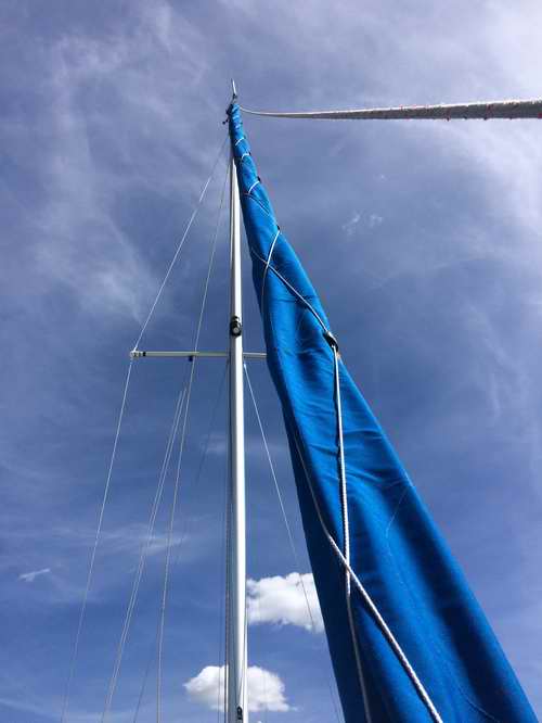 works while underway. In addition, I now clip the free end to the aft line down at the deck beside the mast.