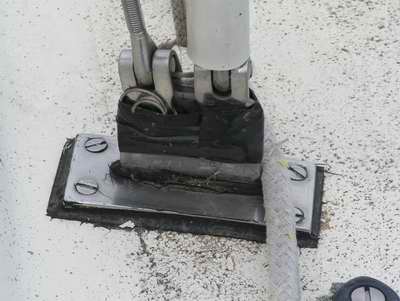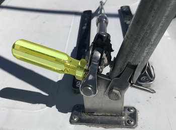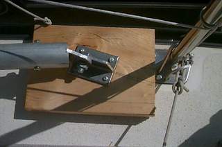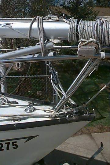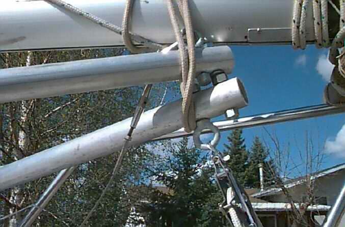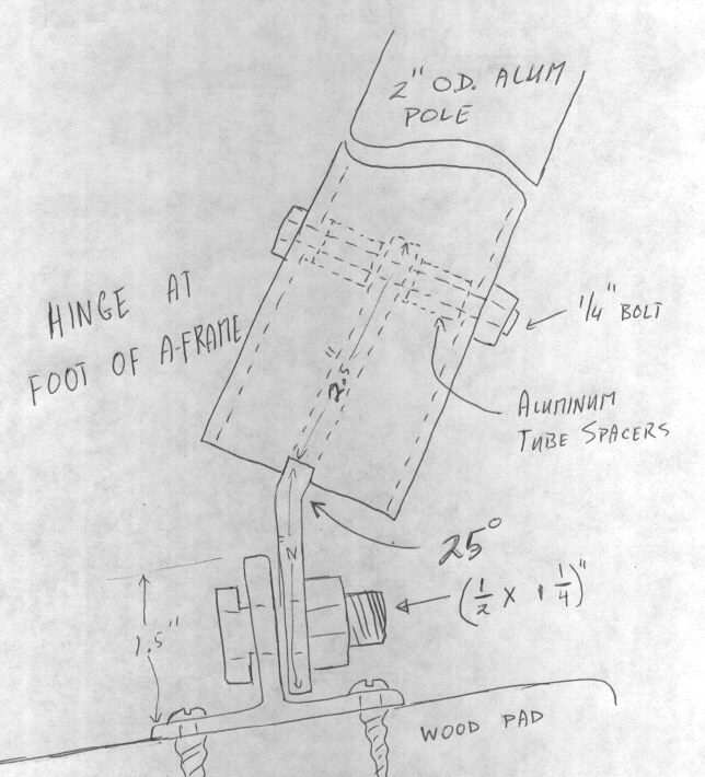 of pole extending beyond the hinge bolt. With the A-frame laying on the deck, the apex fits just short of the forestay