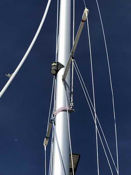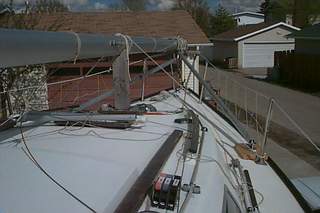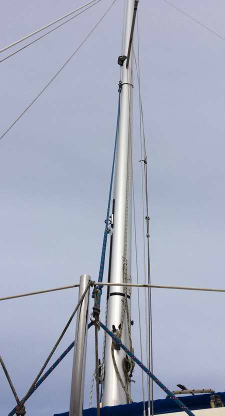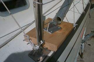 protect the mast, the hinge plate and the mast foot. This was the last time I used the block and tackle to step the mast as I now step the mast with the trailer winch.