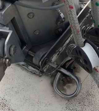 both jib halyards (two wraps around an A-frame arm, then clipped to