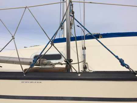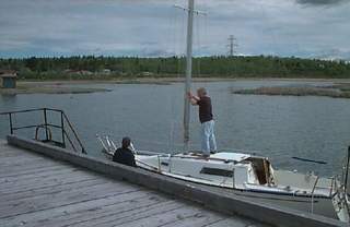 is the only time I stepped the mast on water without the temporary shrouds that eliminate sideways movement of the mast. Never again!