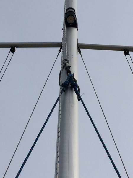 Final check of A-frame, forestay is attached to the apex of the A-frame,