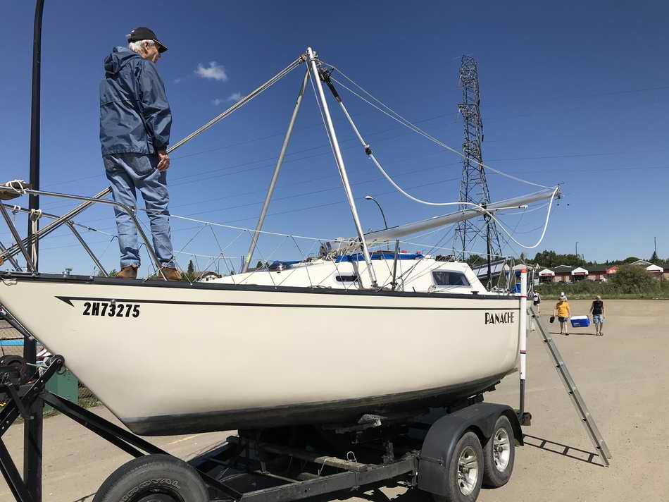 * Sometimes a person walks into your life and you don't realize how much they contributed until they are gone. Roy and Ron were two such people for me. In addition to personal stuff, both of them helped to develop various systems on Panache, especially the A-frame. For this I am very grateful but their loss has me assessing friendships and life. Neither of them was content with a design until it reached its natural perfection. Their drive helped me to further perfect Panache's launch systems. Thankfully the A-frame, temporary shrouds, trailer winch and hull guides