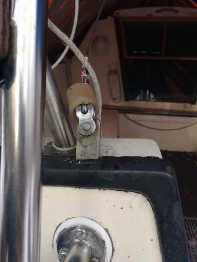 the stem fitting. Next I snug up the shroud and backstay turnbuckles. In