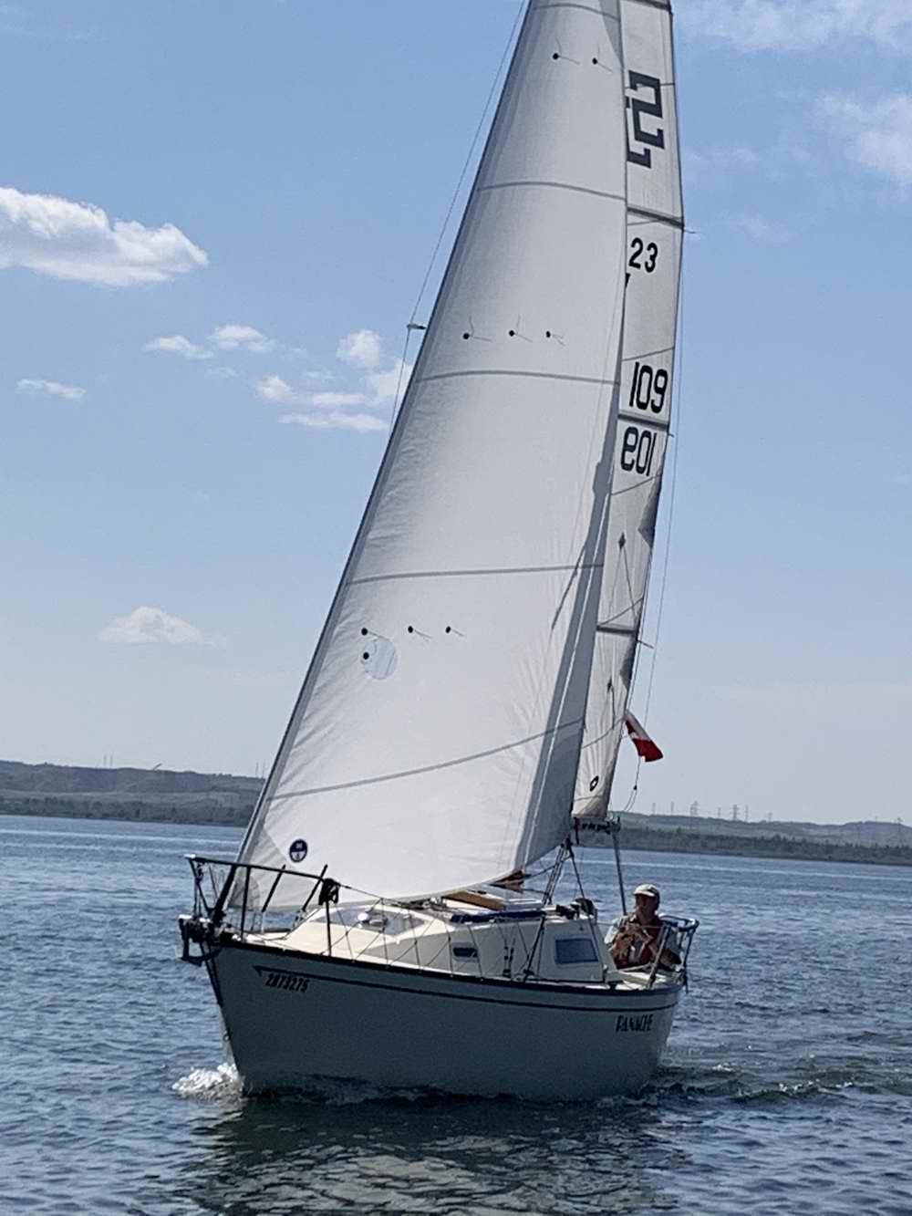 Kerry Poe of the North Sails, Portland loft designed for Hal's SJ23 E/W a furler.