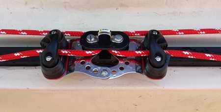 - Shown here is Panache's mainsheet hardware. It has 5 blocks