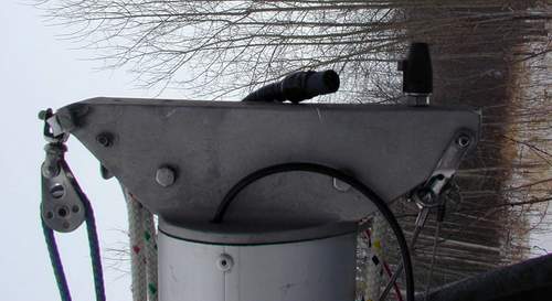 Ian's crane drawing, so ignore the trees in the background OK! This should help to understand Ian's description so he doesn't have to climb up the roof again. That's the spinnaker block at the left. Bob Schimmel.