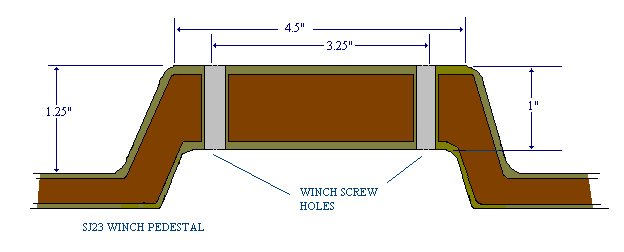 perfectly covers the SJ23 winch pedestal as shown at right. This is the maximum size winch this pedestal can hold without