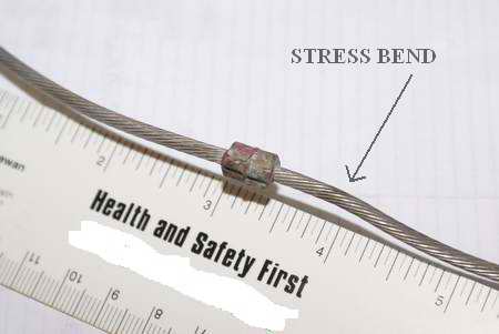 UNBALANCED WIRE - If the core of the wire withdraws a bit after it is cut, it indicates the strands were not balanced when the wire was made. In use it tends to put more load on the core, lowering the breaking strength. It also makes it difficult to assemble the terminal.
