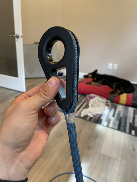 TENSION SHROUDS with LASHING LINE - A lashing of light Dyneema is used on the deck end of the shrouds, forestay and backstay to tension the standing rigging. Some people still use a turnbuckle for this application on an SJ23, and because I wanted to be able to loosen the shrouds quickly to lower the mast, I used their stopper knot lower chain plate adapter (typically used for beach cats) and 4mm Dyneema lashing line. The cool part of this conversion to Dyneema is that the length of the replacement rigging does not have to match the SS lengths. This is because you’re going to make up the overall length with a lashing, making the tolerance on a shroud length pretty large. I ended up using very long shroud lashings because I’m planning to move the chain plates to the cabin roof in the spring, as well as converting to integral composite chain plates instead of stainless steel. These further changes will reduce the length of my lashings by ~(12-14)”, so I made them about 28” long this time. In the spring, when I move the chain plates, I won’t have to make new shrouds.
