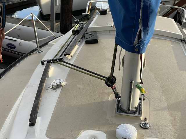 COST - The all in cost for the conversion to Dyneema standing rigging was about $1,200.00 US (2021). Most of that was for the new hardware required for the Dyneema. If I were to replace the just the Dyneema it would cost only $250.00 US. Overall I’m exceptionally pleased. This standing rigging has this crazy modern space age look with a traditional feel to it when you’re standing in the cockpit. I’ve load tested each piece of rigging well beyond any force they could experience aboard the boat. I went for a sail in moderate wind one evening and I must say the rigging is STUNNING under sail. It already out performs my old rigging without any tuning. Granted, I’m pretty sure my old SS rigging was factory original and was also not tuned to within a mile of spec. If anyone has any questions about this process or is interested in converting their SJ23 rigging to Dyneema, please email me. I’m happy to put you in touch with John at Colligo Marine. Fair winds, my friends. Greg Overton Go to Tech Tip P07 to see the rest of the modifications.