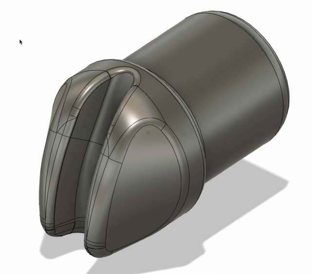 For this reason I replaced the spreader ends with new ones drawn in CAD and printed out of carbon fiber-reinforced nylon and then filled with West resin. The spreader end is drawn to be perfectly vertical on the bottom and ~150 inward at the top, with the fairest curve possible in the ~32mm outside diameter of the spreader end. They are designed to remain attached to the shroud instead of the spreader, so I didn't use a bolt to hold it to the spreader. I whipped each end straight through the center of the shroud, which means I should be able to adjust, inspect, replace it easily. When I lower the mast, I simply unplug the end fitting from the spreader leaving it attached to the shroud in the correct place. When I step the mast, I plug the spreader onto the mast fitting and the spreader fitting into the spreader and hoist away! (pictured at right in CAD without the whipping holes drawn)