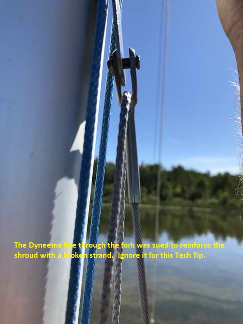 a Ronstan RF354, body & lower jaw turnbuckle. Fastened to chain