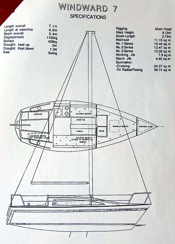 These are the photo’s of when we recently cruised with the kids and those posted when we bought Esprit. The photo’s of Escapade below are of a sister yacht. I am hoping to meet the owner next time we are down on the lake. I’ve also attached the PDF of the original brochure and press release. You’ll note that all specs are metric, which as a Canadian, should make sense to you! Note the difference in displacement and ballast compared with the Windward 7... mine is one heavy boat, about 1600kg (3,520 lb) + motor + gear, but boy is she stiff in the water! Handles the chop and wake from the stink boats really well.