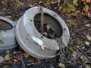 A truck brake drum can be converted to a mooring weight by using one of the methods described below. The drum shown in the picture at right uses the first method. The good part of this design is that steel does not corrode in deep fresh water. The metal stays in pristine condition.
