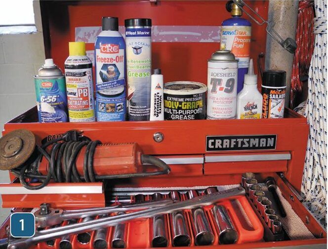 5. ReassemblyDuring reassembly, coat new threads with graphite grease or a product like Bostik’s Never-Seez. Its also good to use white Lithium grease in areas where the stickier, more tenacious, heavy-duty coatings are a problem. The threads of the trailer’s screw jack pads also get some white grease; the corner jacks get a dose of CRC 656 after each post-submersion rinse-down; and the wheel bearings get new grease pumped through the hubs annually. I also spray some Boeshield T-9 on electrical connectors before and after a launching or haul out, and the job is done.