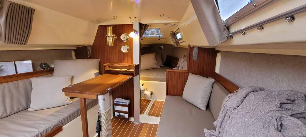 I've ordered all new cushions, which should arrive in the next few weeks. Plus I've got a few more light fixtures to install, finish varnishing and assembling the galley and install the freshwater system. My wife is putting the finishing touches on the new curtains and then into the water she goes!