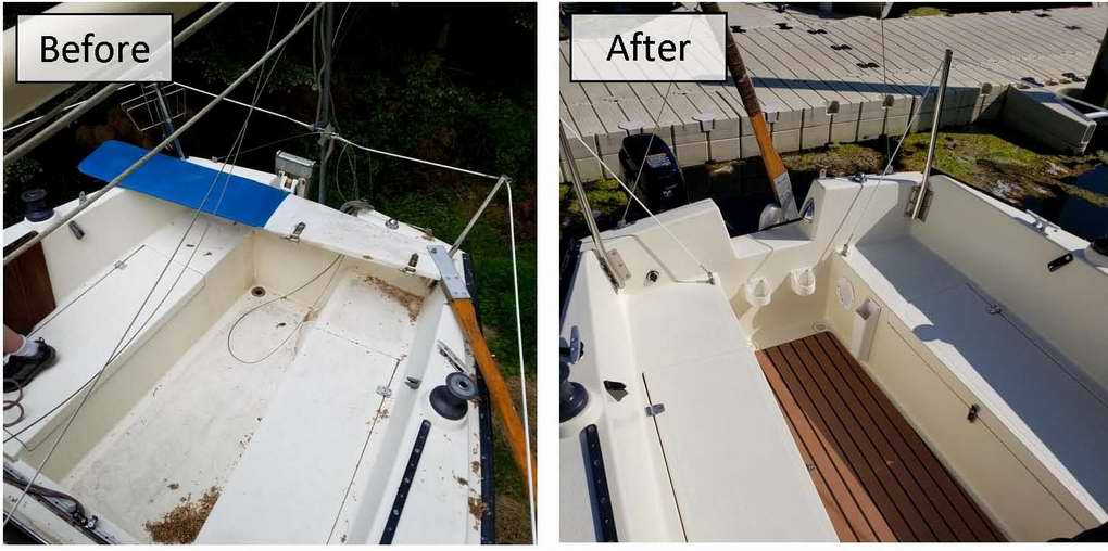 We replaced nearly all the interior wood, most of which was teak plywood that had dry rotted and delaminated.