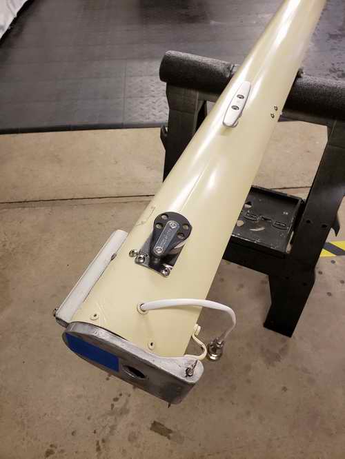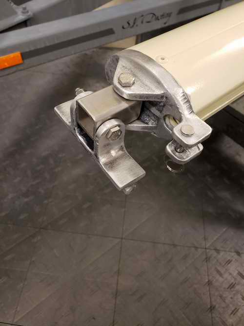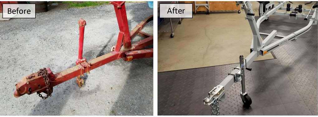 This Raymarine chart plotter, small as it is, is more useful than the compass. It is a Raymarine Dragonfly 5 Pro which might be discontinued. The plotter works well, has low power drain and is super easy to see in bright sunlight. It came with base charts and an SD card can be used to update them from Navionics, if desired. Painted spars. The old paint was stripped to bare aluminum, then primed and repainted. New non-skid. And finally back in the water. While the boat was in the water I tackled the trailer. I got tired of looking at it on the way to the beer store.