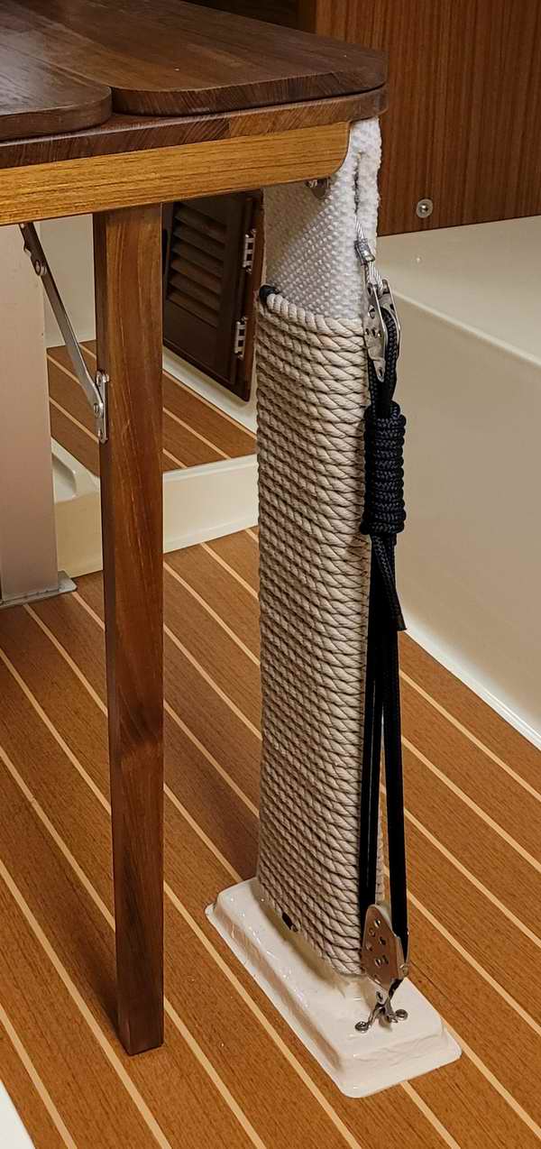 I finished reworking the centerboard trunk. I originally wrapped it in hull fabric, but felt like it looked frumpy. A friend suggested wrapping it in rope and I couldn't be happier with how it turned out.