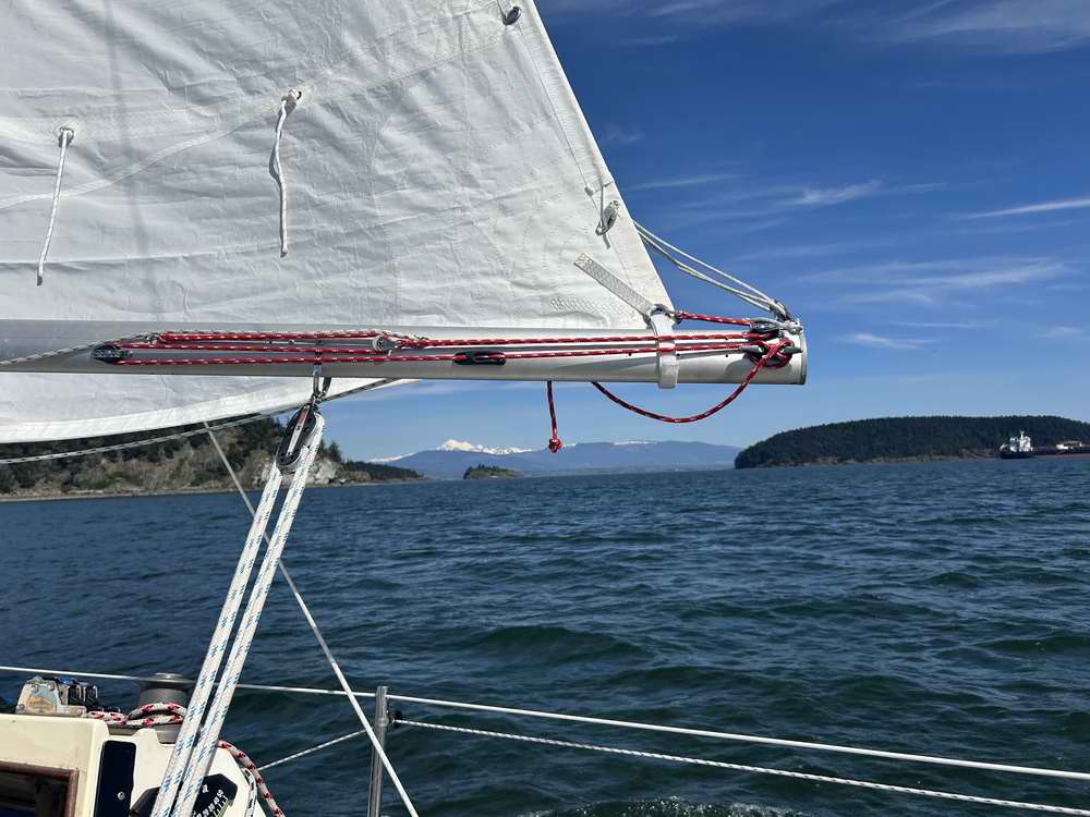 ![]() Check out the slick jibe preventer hanging from the boom vang ring. |