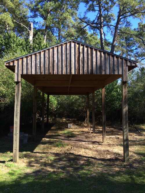 straps slung from the shed posts. That's only 700 pounds per strap end for an empty hull. Well within limits.