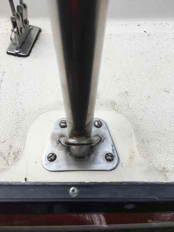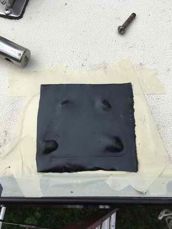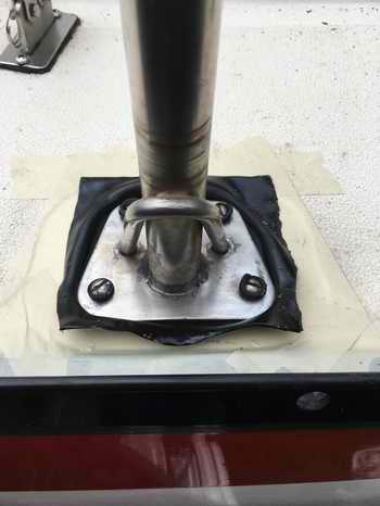 So while Randy was in the mood to seal the deck, a rain storm was in the weather forecast, he sealed the last of the deck leaks. The stanchions had never been removed since the factory installation. The butyl rubber sealed the deck perfectly.