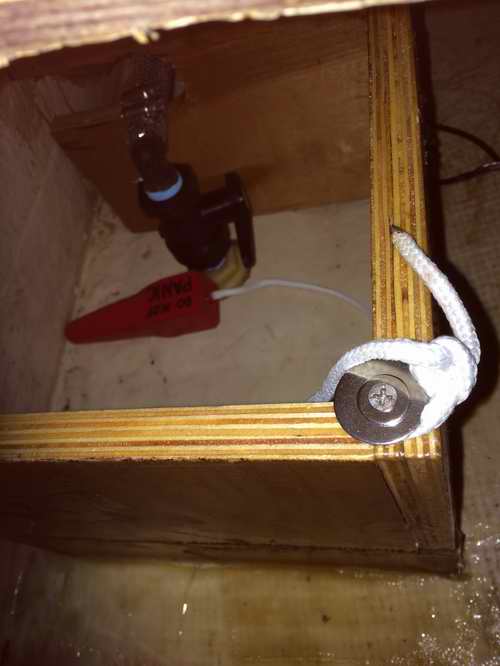 Randy installed a protective cage around the valve to protect it from a sliding object. See the LARGE limber hole at the lowest points for water to flow through and the red plug in case of a leak.