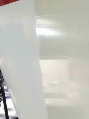 The toe rail was painted with black "Rust-Oleum high performance enamel". A very tough finish that sets in 15 minutes. The cove stripe was repainted with Interlux Brightside paint; brushed and "tipped" with a wedge foam brush. Note that is was extended down the aft of the hull. "Repainting has to be done in multiple thin coats to prevent weeps and sags and done in small sections so it can be tipped before it dries. If you wait too long before tipping, it leaves brush marks." The gel coat was buffed with 1 quart of 3M Marine Restorer and wax. Since it was so badly oxidized Randy chose the most aggressive rubbing compound, applying and polishing it with a buffing pad on an electric drill. "This job must be done in the shade with low humidity. Do small areas at a time" 2.5 hrs per side.
