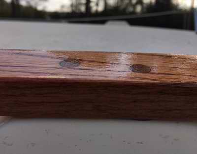2016-12 - As you can see blow the fasteners were nicely hidden behind wood plugs and the wood coated with Cetol to protect it from the weather.